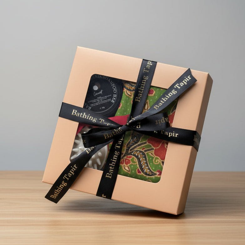 This practical and thoughtful set combines everything you need for a refreshing hair care ritual. The SLS-free shampoo bar gently cleanses without stripping moisture, while the head massage tool helps stimulate circulation and promote relaxation. Finish with the soft cotton towel for a fresh, spa-like touch — all beautifully packed in a kraft gift box, with a handmade batik burlap bag included as a reusable tool bag for easy storage or travel.